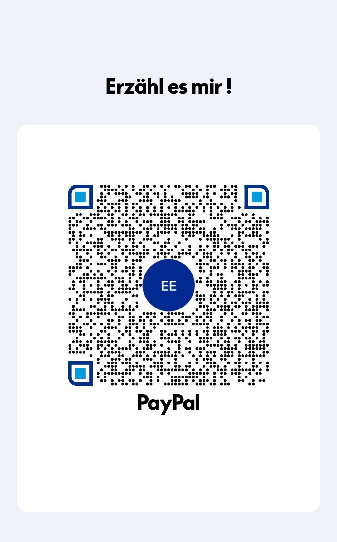 Preisliste herunterladen PaypalZahl ganz einfach per Paypal- link, QR-Code oder über deinen Accountpaypal.me https://paypal.me/erzaehlesmir du willst anonym bleiben?-zahle digital„Wenn du mit Krypto zahlen möchtest, meld dich bitte nach der Buchung per E-Mail. Ich erstelle dir dann einen individuellen Zahlungslink über NOWPayments für den genauen Betrag. bleib anonympay with crypto